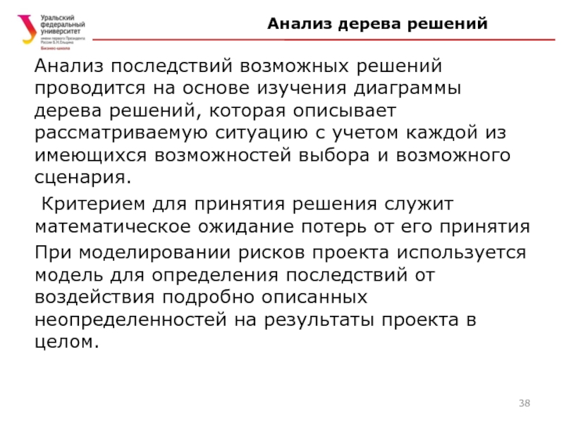 простым способом анализа риска, связанного с принятием решения. Включает лишь