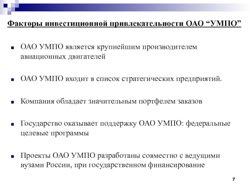 на тему: «Повышения инвестиционной привлекательности промышленности в РБ (на примере ОАО “УМПО”) »