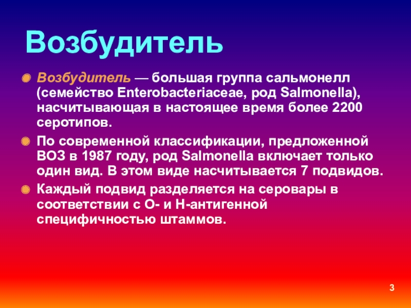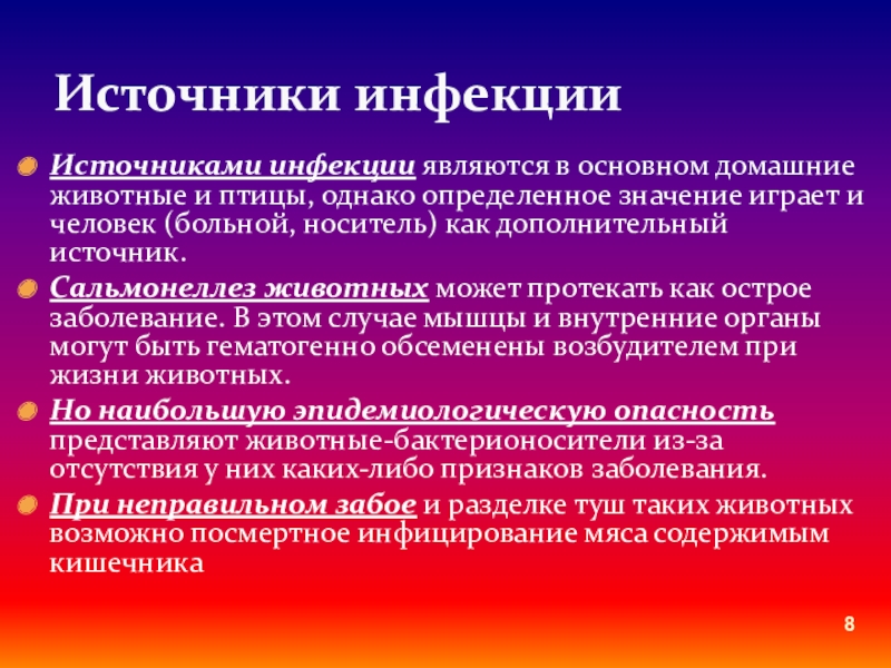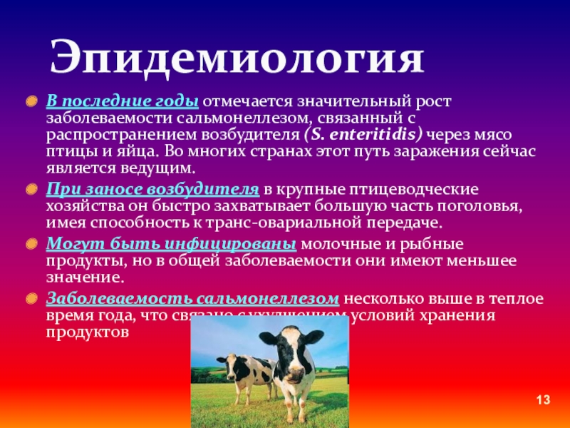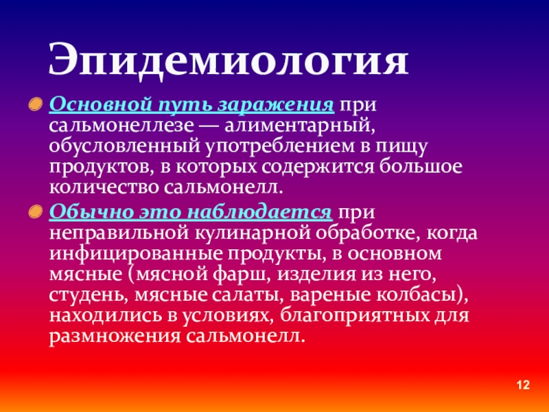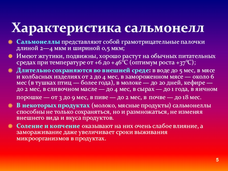 В некоторых продуктах (молоко, мясные продукты) сальмонеллы способны не только сохраняться, но и размножаться, не изменяя внешнего вида и вкуса продуктов.