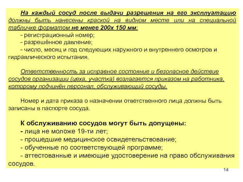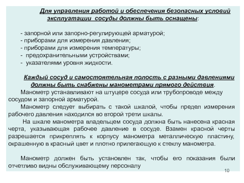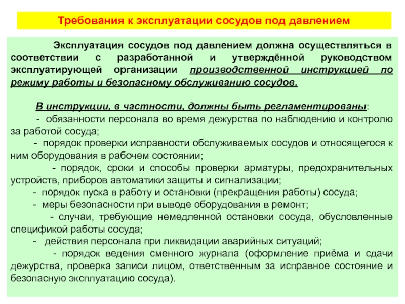 работе с сосудами под давлением.