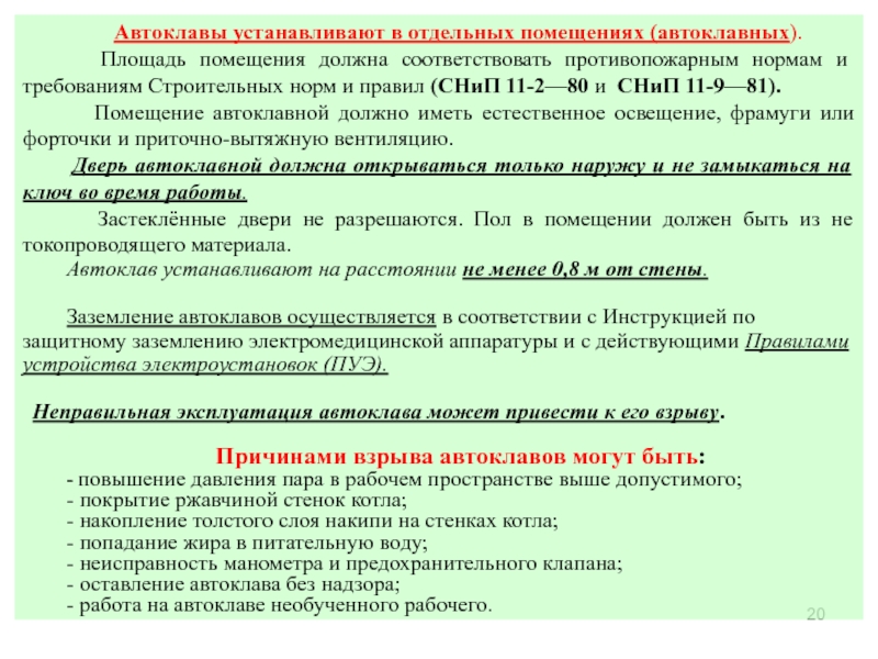 1. Порядок оборудования автоклавных.