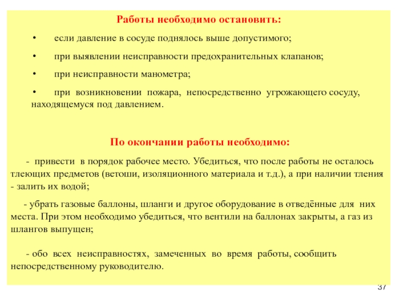 Слайд 37Работы необходимо остановить: