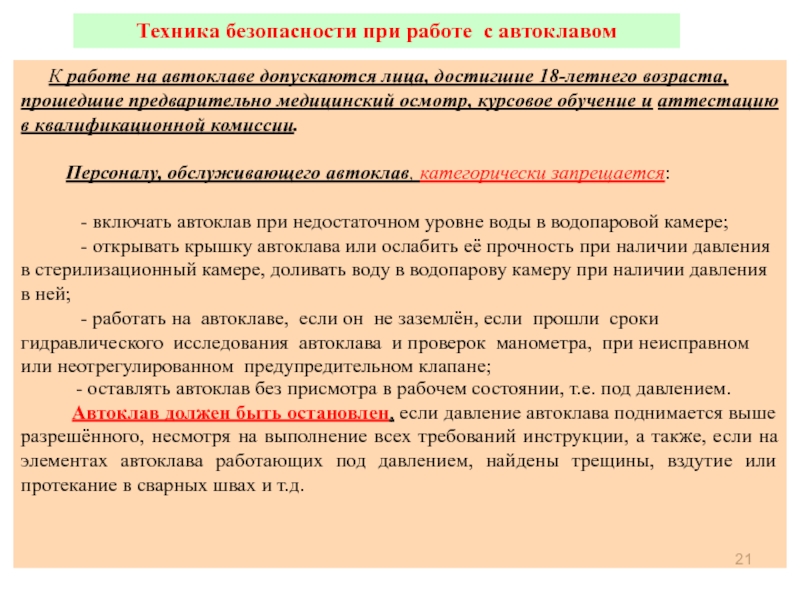 2. Особенности работы с автоклавами и