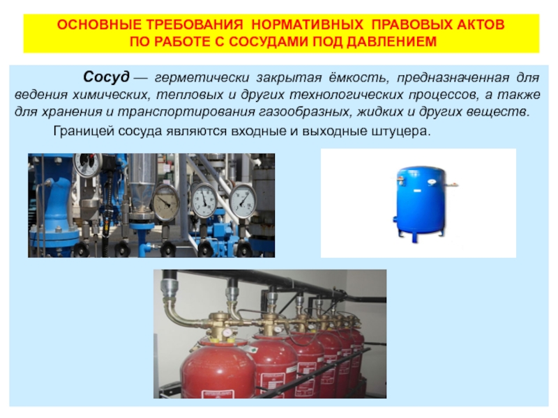 Сосуд — герметически закрытая ёмкость, предназначенная