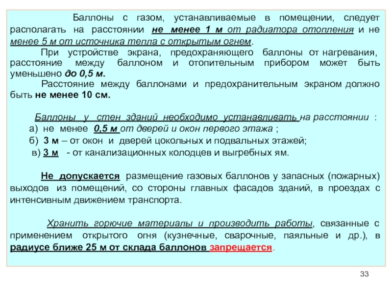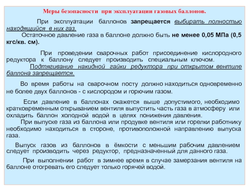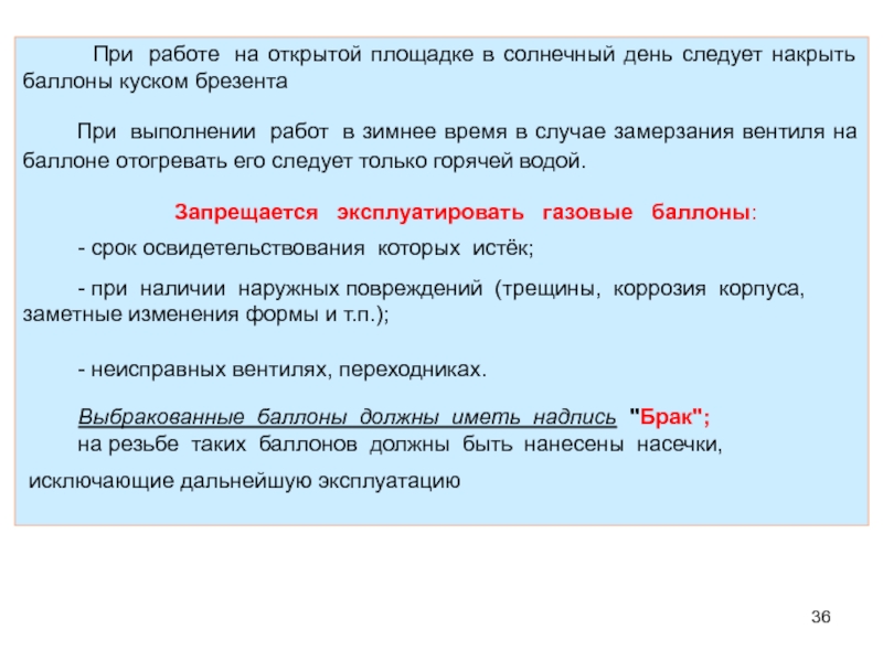 Слайд 35Меры безопасности при эксплуатации газовых баллонов.