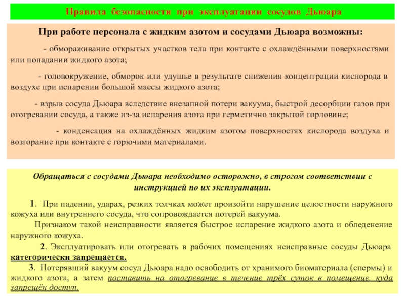 2. Меры безопасности при работе с сосудами Дьюара.