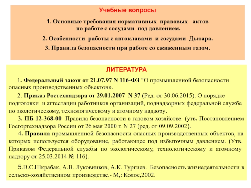1. Федеральный закон от 21.07.97 N 116-ФЗ "О промышленной безопасности опасных производственных объектов».