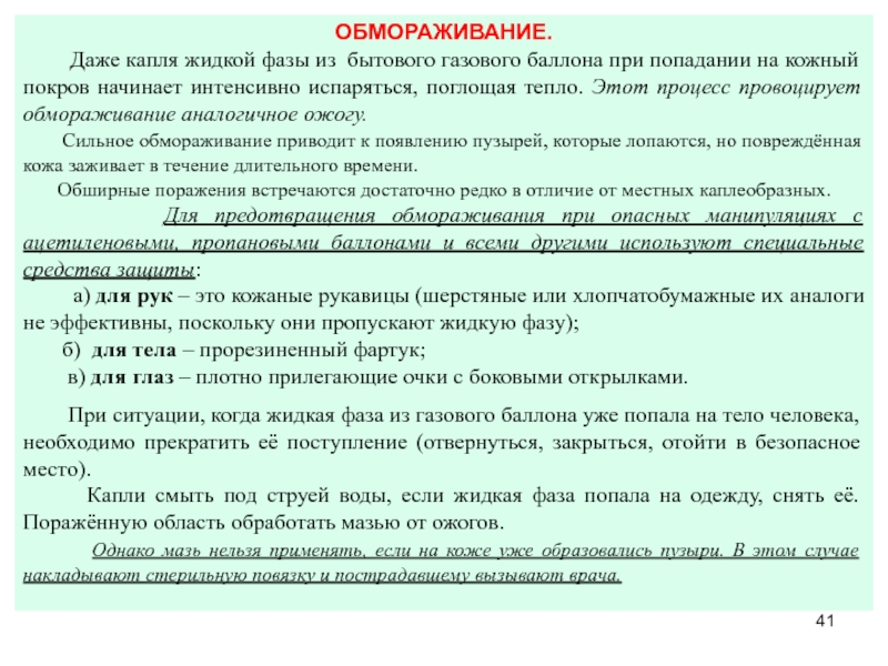 бытового газового баллона при попадании на кожный покров начинает интенсивно