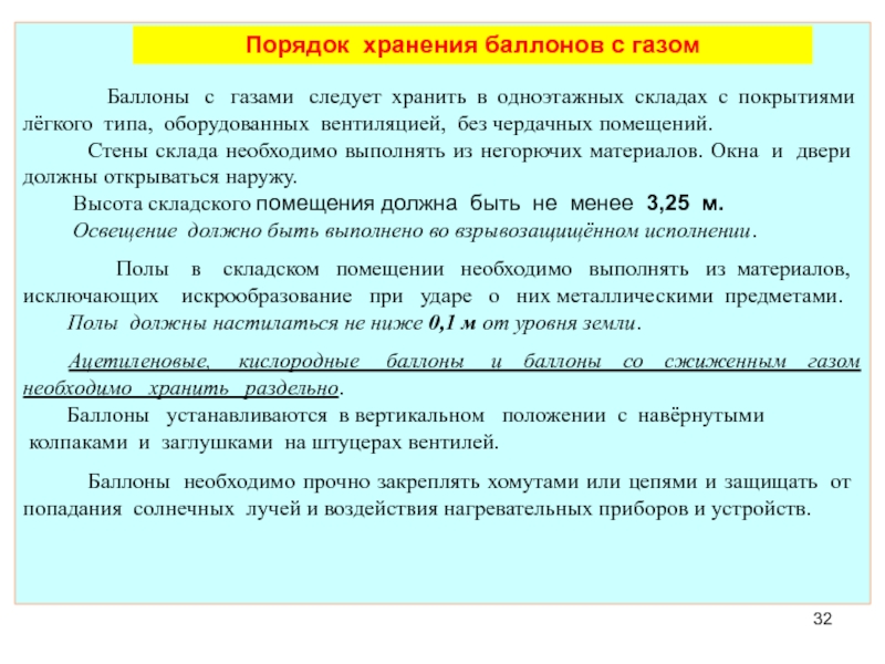 3. Порядок хранения и использования баллонов с газом.