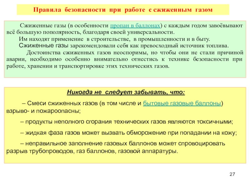 3. Правила безопасности при работе со сжиженным газом.