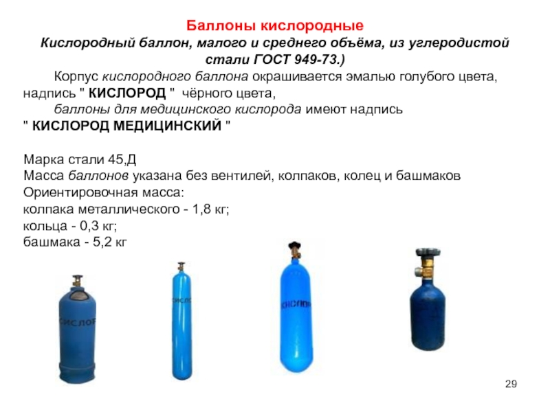 - баллоны, предназначенные для транспортирования и хранения