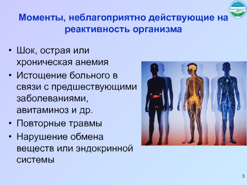 Слайд 3Моменты, неблагоприятно действующие на реактивность организма