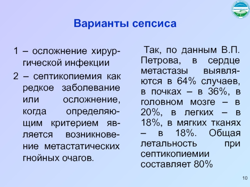 Слайд 10Варианты сепсиса