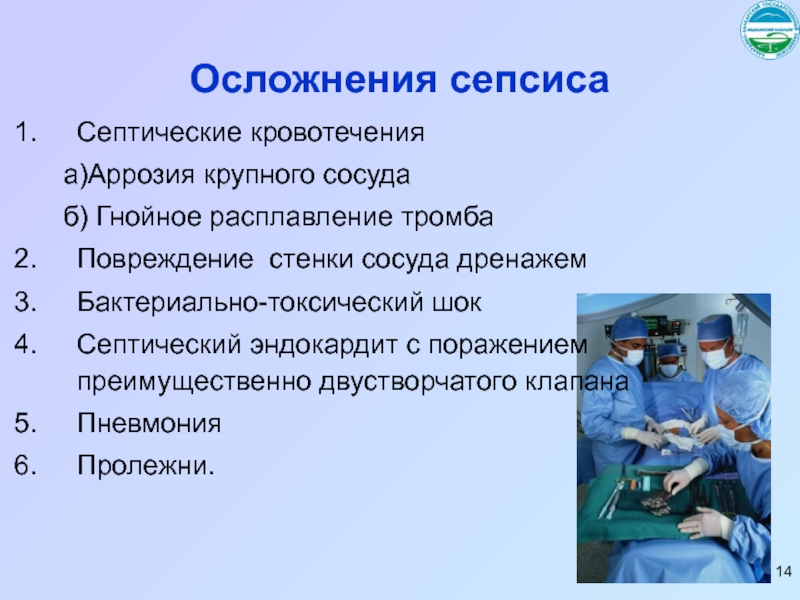 Слайд 14Осложнения сепсиса