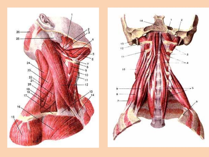 Мышцы шеи (грудино-ключично-сосцевидная, лестничные, длинная мышца головы и шеи)