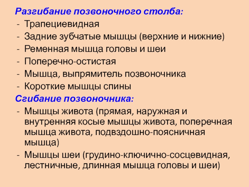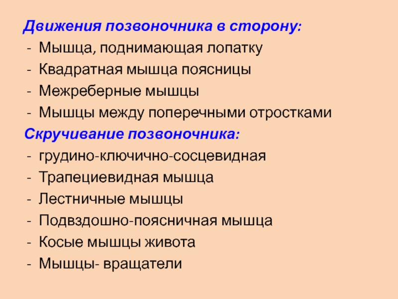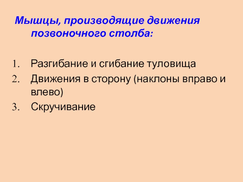 Слайд 57Мышцы, производящие движения позвоночного столба: