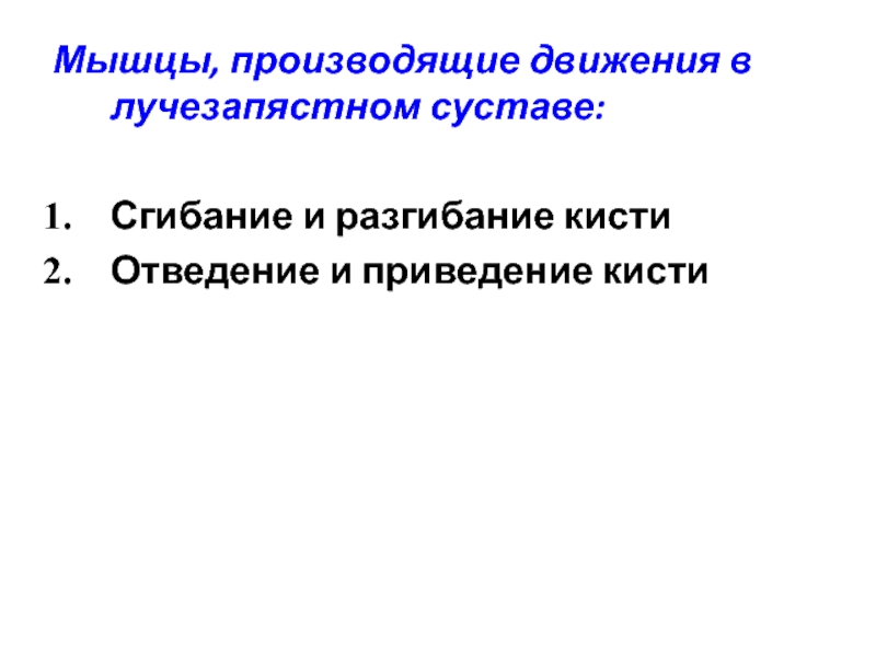 Слайд 68Мышцы, производящие движения в лучезапястном суставе: