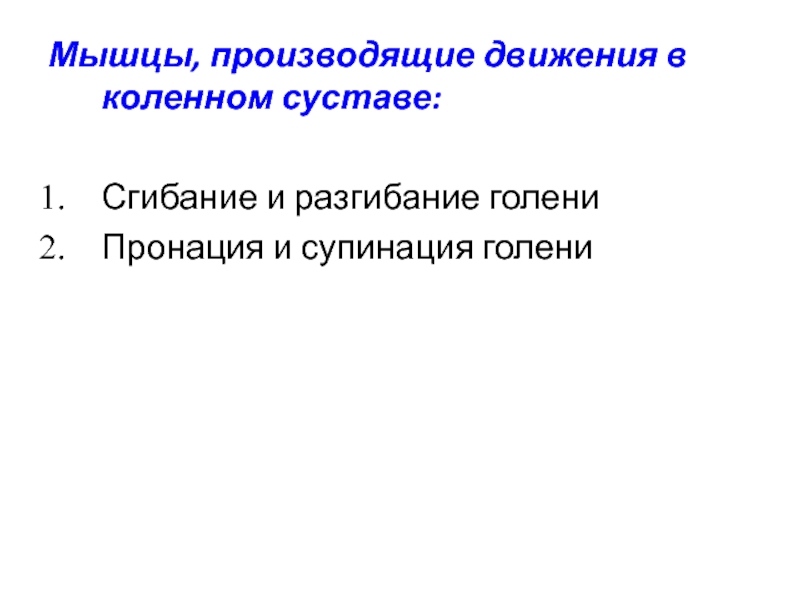 Слайд 72Мышцы, производящие движения в коленном суставе: