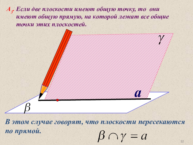 В этом случае говорят, что плоскости пересекаются по прямой.
