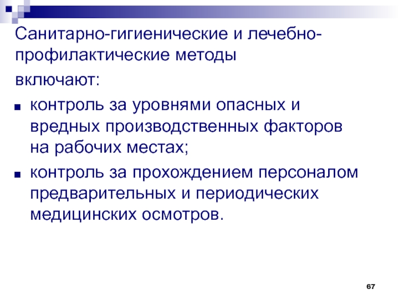 Слайд 67Санитарно-гигиенические и лечебно-профилактические методы
