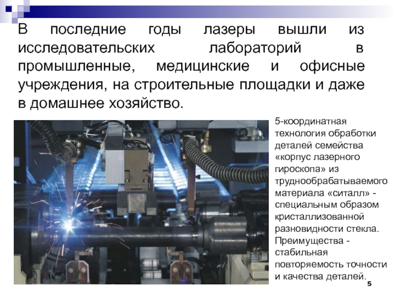 Слайд 5В последние годы лазеры вышли из исследовательских лабораторий в промышленные,