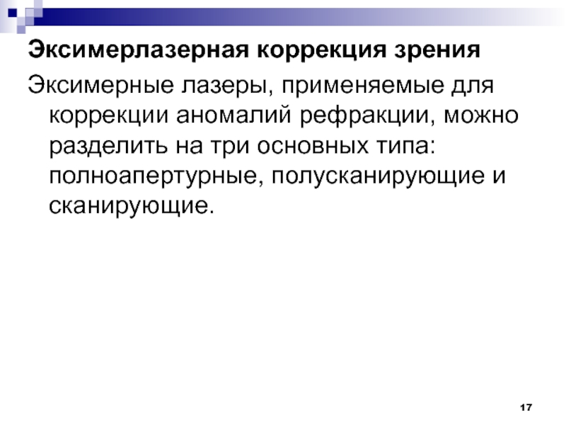 Слайд 18Полноапертурные лазеры воздействуют сразу на всю зону роговицы.