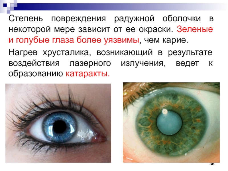окраски. Зеленые и голубые глаза более уязвимы, чем карие.