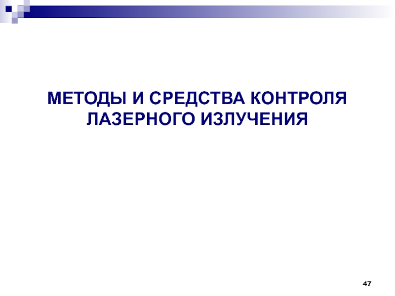 Слайд 47МЕТОДЫ И СРЕДСТВА КОНТРОЛЯ ЛАЗЕРНОГО ИЗЛУЧЕНИЯ