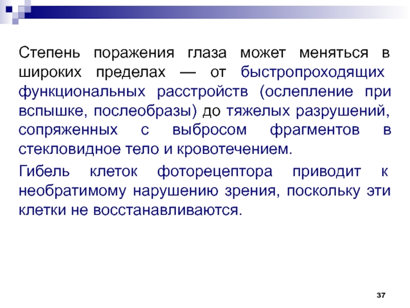 Слайд 37Степень поражения глаза может меняться в широких пределах — от