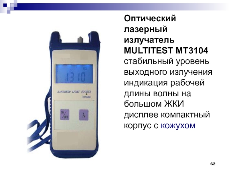Слайд 62Оптический лазерный излучатель MULTITEST MT3104