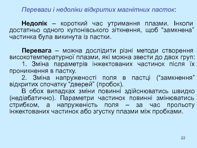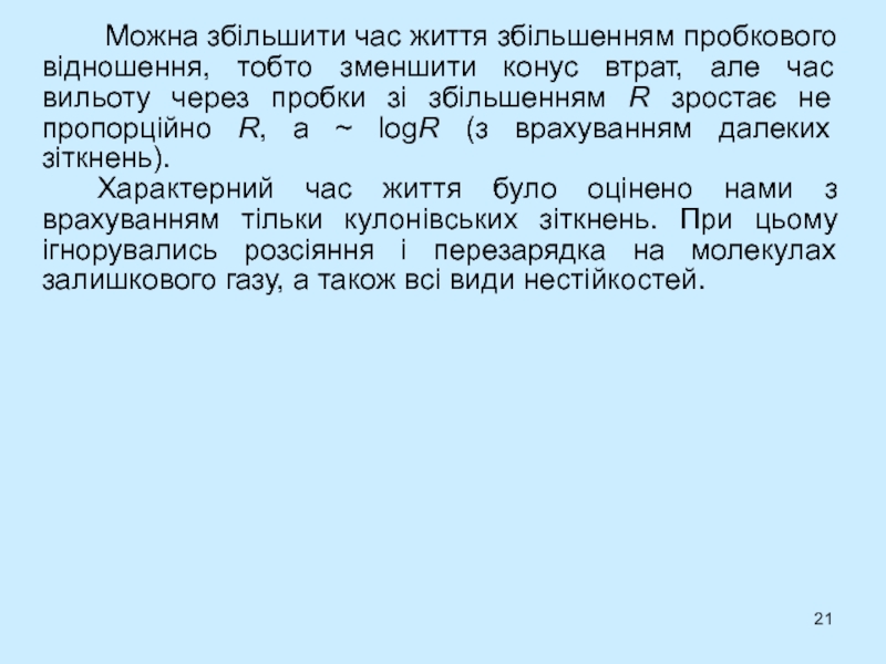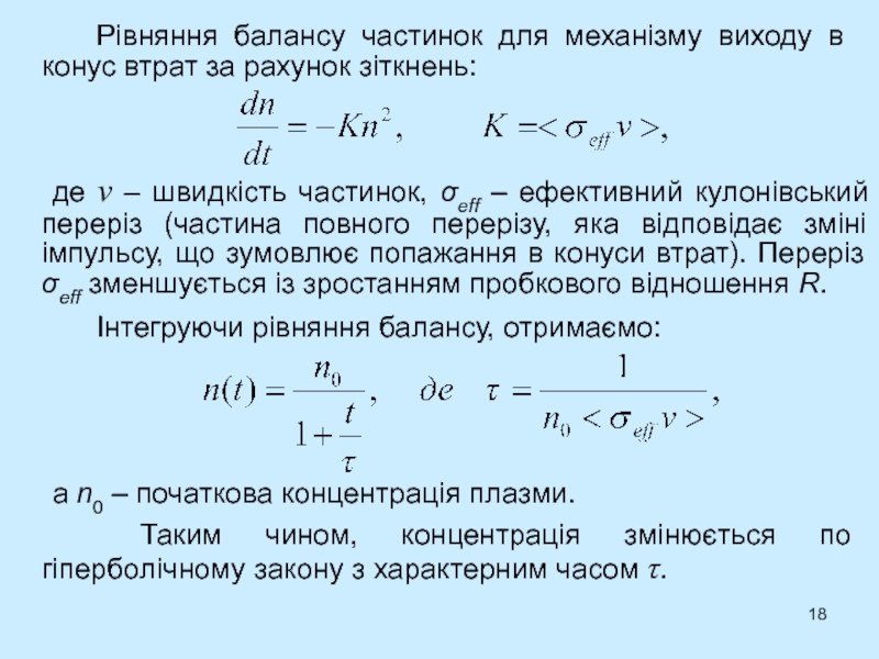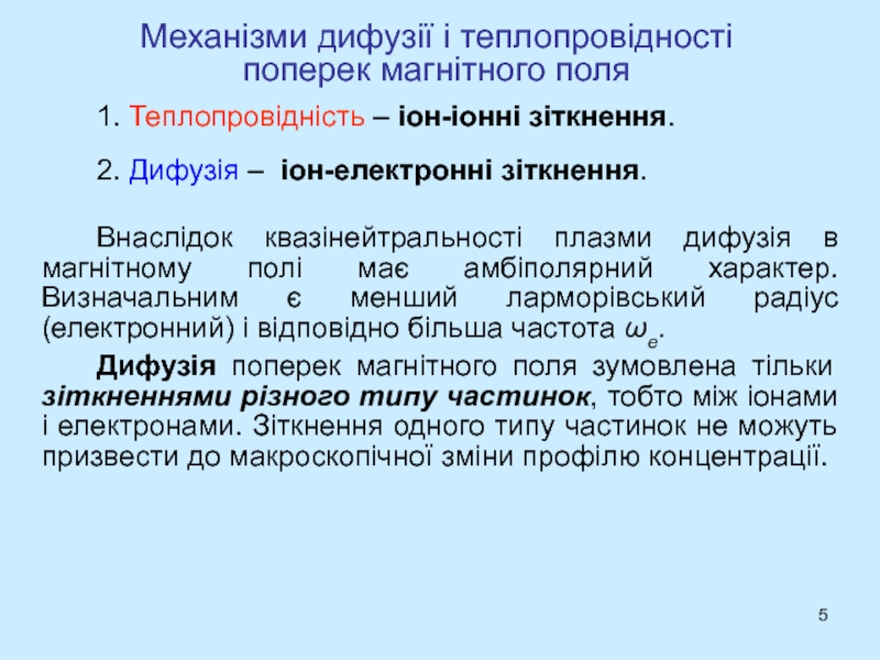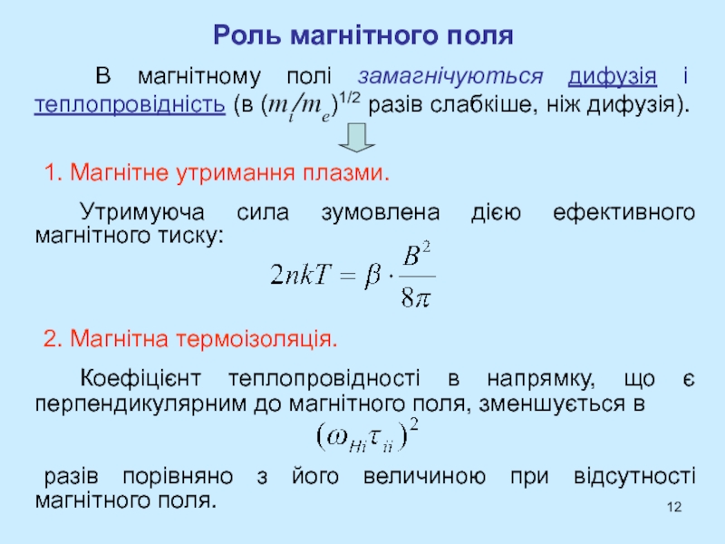 середня довжина вільного пробігу, v – середня швидкість частинок, cv – питома теплоємність при постійному об’ємі (збільшення енергії 1г речовини при підвищенні Т на 1 градус). Оскільки густина теплової енергії ([Дж/м3]) в плазмі при температурі Т Коефіцієнт теплопровідності