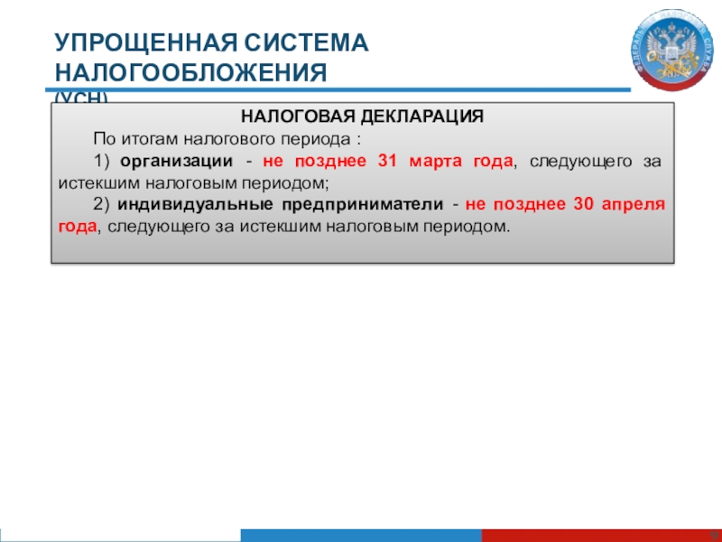 Слайд 7УПРОЩЕННАЯ СИСТЕМА НАЛОГООБЛОЖЕНИЯ