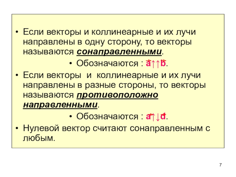 и коллинеарные и их лучи направлены в разные стороны, то векторы называются противоположно направленными.