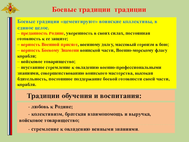 Боевые традиции «цементируют» воинские коллективы, в единое целое.