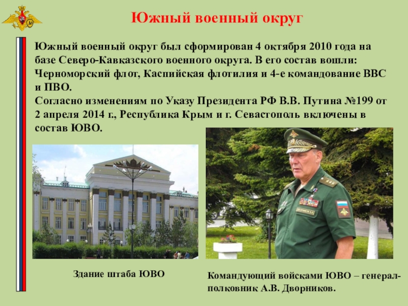 Командующий войсками ЮВО – генерал- полковник А.В. Дворников.