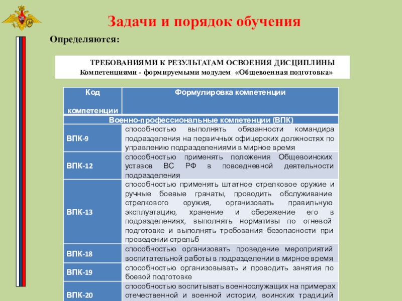 - стремление к овладению венными знаниями.