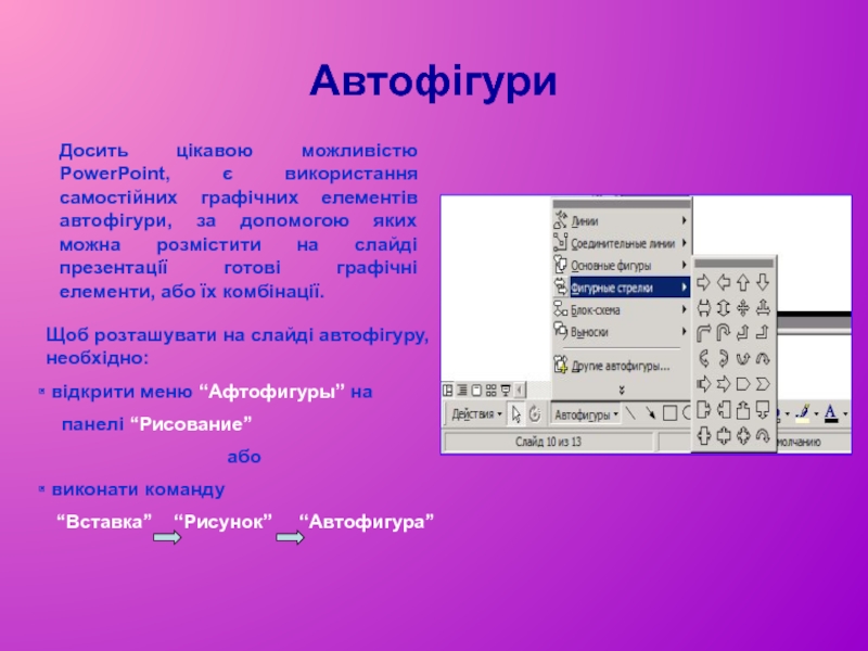 “ Из мастера автосодержания…” -створення чернетки презентації, яку треба буде редагувати;