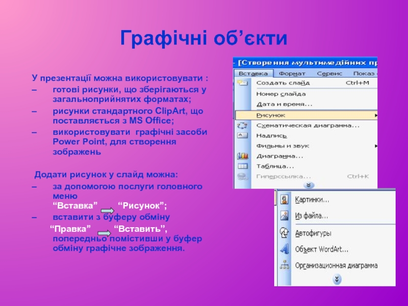 слайд” панелі “Форматирование” або виберіть у меню “Вставка” команду “Создать слайд” ;