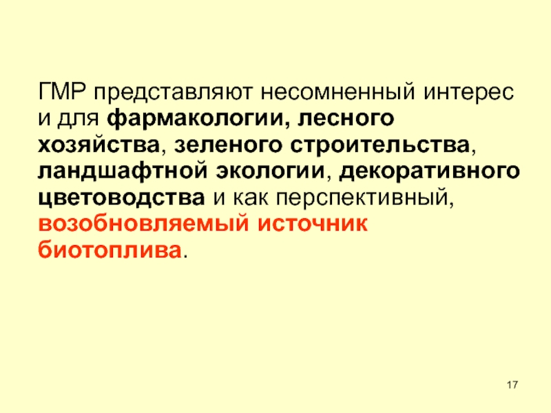 ГМР представляют несомненный интерес и для фармакологии, лесного хозяйства, зеленого