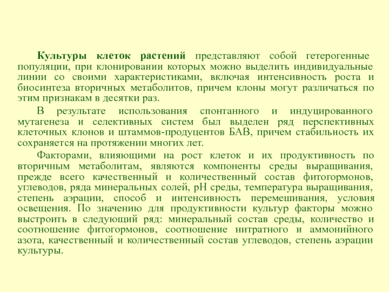 Слайд 46 Для крупномасштабного культивирования растительных клеток для препаративного получения вещества вторичного