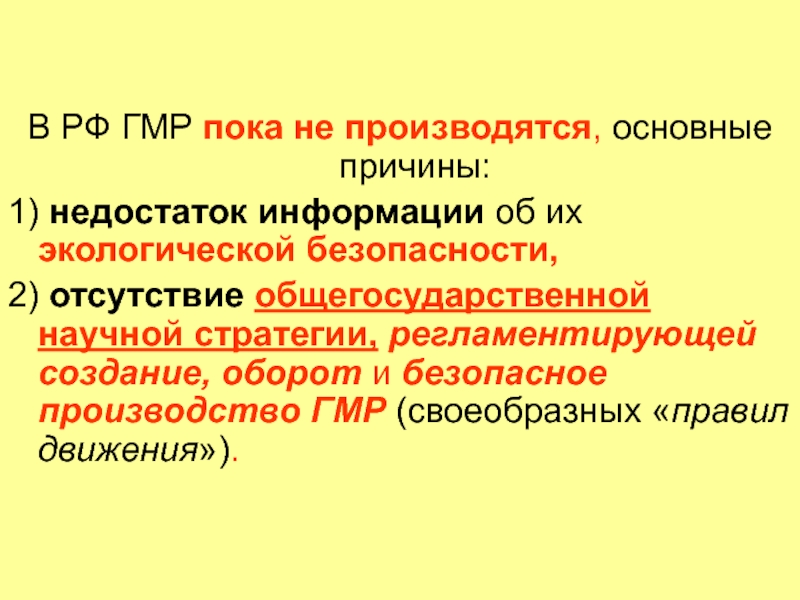 создание, оборот и безопасное производство ГМР (своеобразных «правил движения»).