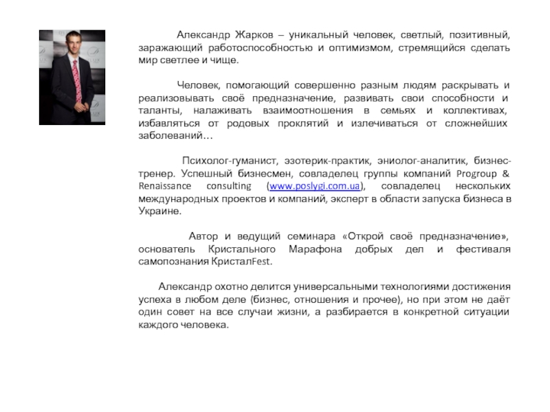 Слайд 13 Александр Жарков – уникальный человек, светлый,