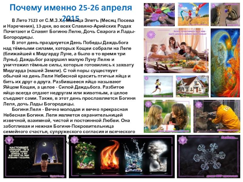 во всех Славяно-Арийских Родах Почитают и Славят Богиню Лелю, Дочь Сварога и Лады-Богородицы.