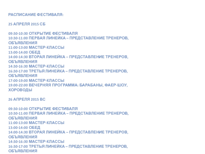 14:00-14:30 Вторая линейка – представление тренеров, объявления
