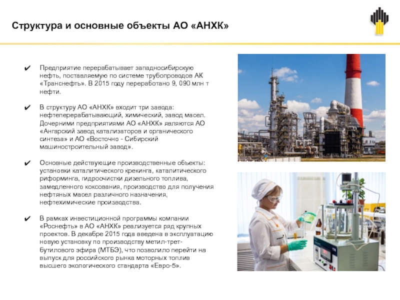 По ключевым показателям - объему и глубине переработки нефти – АНХК входит в первую десятку среди предприятий отрасли.