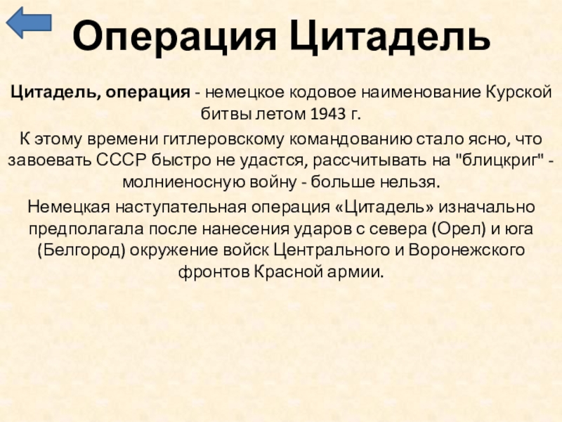 Цитадель, операция - немецкое кодовое наименование Курской битвы
