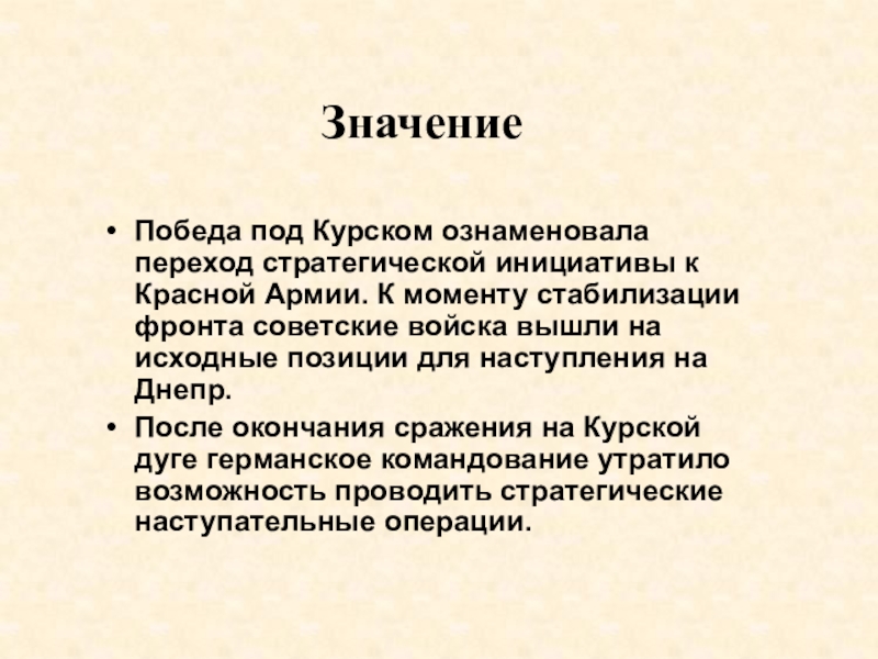 После окончания сражения на Курской дуге германское командование утратило возможность проводить стратегические наступательные операции.