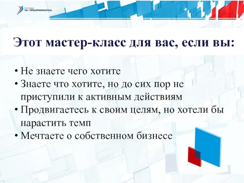 Этот мастер-класс для вас, если вы:Не знаете чего хотитеЗнаете что хотите, но до сих пор не приступили