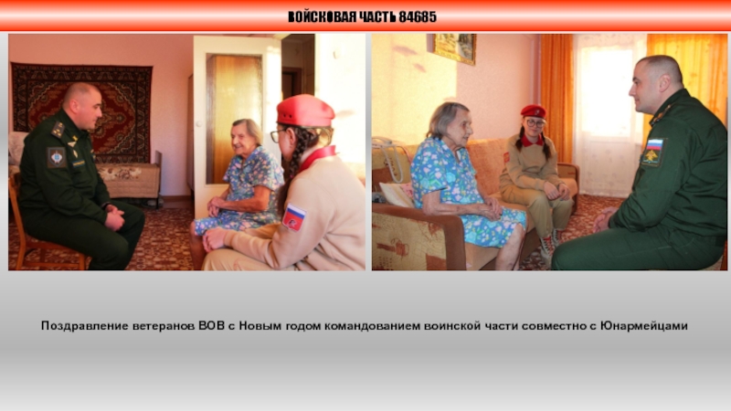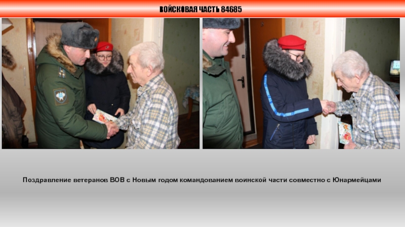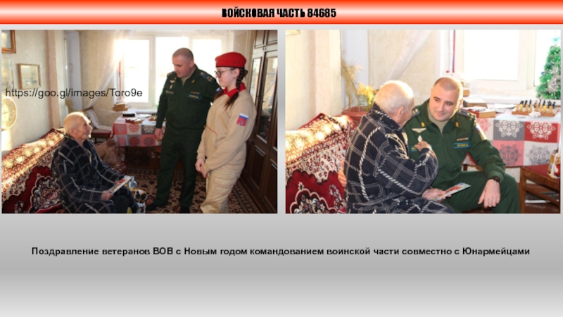 ВОЙСКОВАЯ ЧАСТЬ 84685Поздравление ветеранов ВОВ с Новым годом командованием воинской части совместно с Юнармейцамиhttps://goo.gl/images/Toro9e