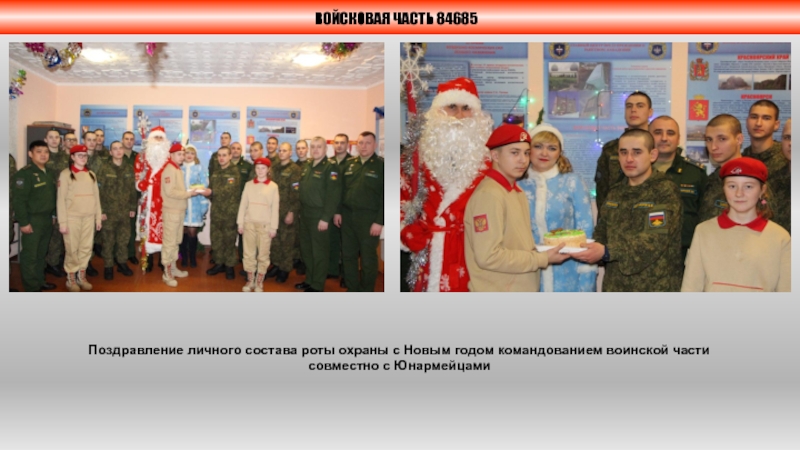 ВОЙСКОВАЯ ЧАСТЬ 84685Поздравление личного состава роты охраны с Новым годом командованием воинской части  совместно с Юнармейцами